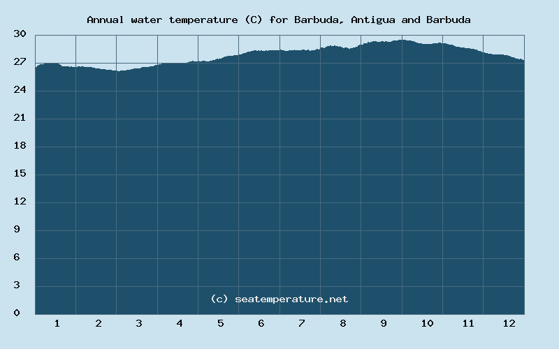 Below is the annual chart of sea temperature changes in the Caribbean Sea in Barbuda.