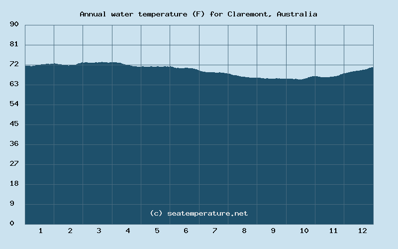 It cannot be guaranteed that the water temperature in Claremont will be comfortable for swimming in any month of the year.