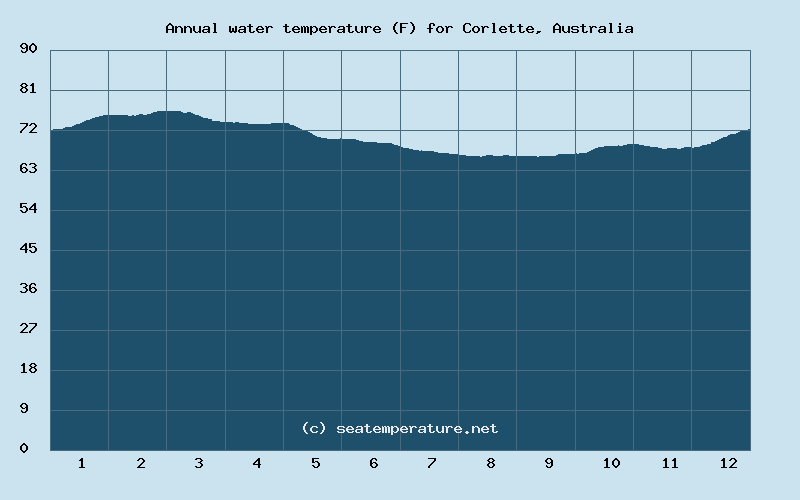 You can explore detailed data on how the water temperature in Corlette varies each month:
