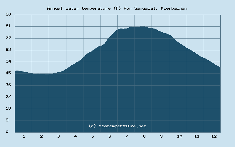 On this page, you will find comprehensive information about the sea temperature in Sanqacal in Azerbaijan, including current readings, historical data and trends, monthly averages, as well as weather forecasts and upcoming temperature predictions. We find every spot where you can swim and tell you what the water temperature is there today and throughout the year.