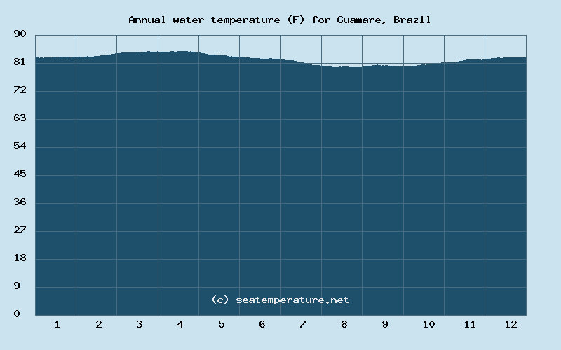 On this page, you will find comprehensive information about the sea temperature in Guamare in Brazil, including current readings, historical data and trends, monthly averages, as well as weather forecasts and upcoming temperature predictions. We find every spot where you can swim and tell you what the water temperature is there today and throughout the year.