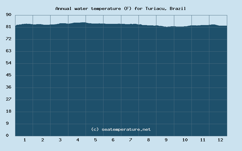 The water temperature in the Atlantic Ocean in Turiacu during the winter ranges from 26°C to 30°C (79°F to 86°F).