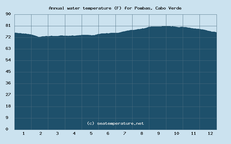 On this page, you will find comprehensive information about the sea temperature in Pombas in Cape Verde, including current readings, historical data and trends, monthly averages, as well as weather forecasts and upcoming temperature predictions. We find every spot where you can swim and tell you what the water temperature is there today and throughout the year.