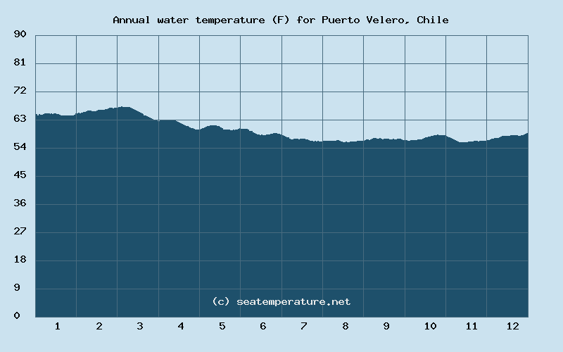On this page, you will find comprehensive information about the sea temperature in Puerto Velero in Chile, including current readings, historical data and trends, monthly averages, as well as weather forecasts and upcoming temperature predictions. We find every spot where you can swim and tell you what the water temperature is there today and throughout the year.