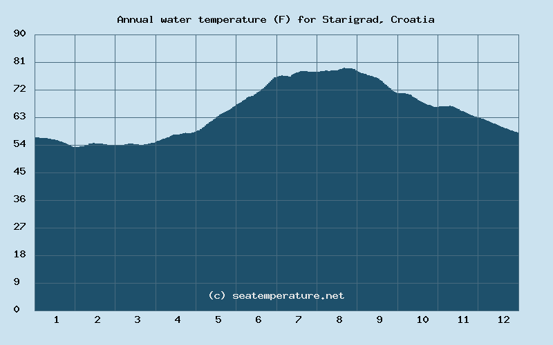 You can explore detailed data on how the water temperature in Starigrad varies each month: