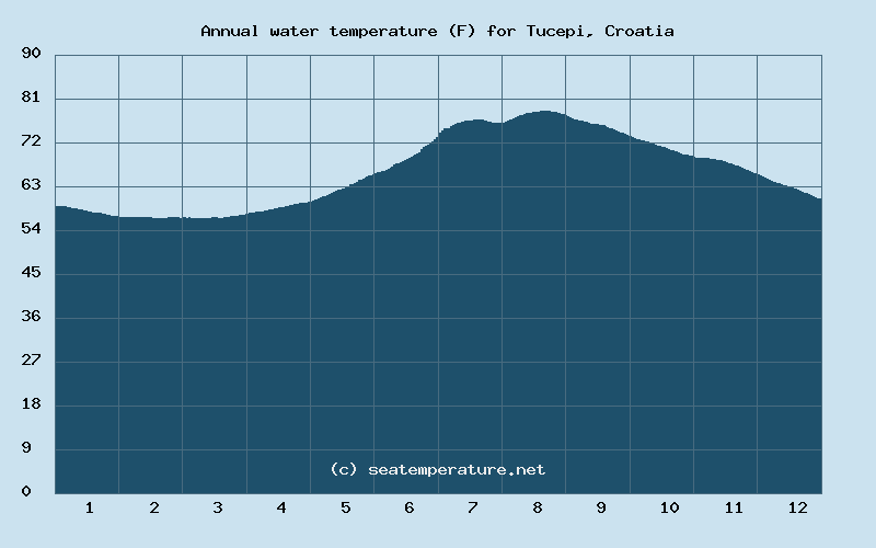 You can explore detailed data on how the water temperature in Tučepi varies each month: