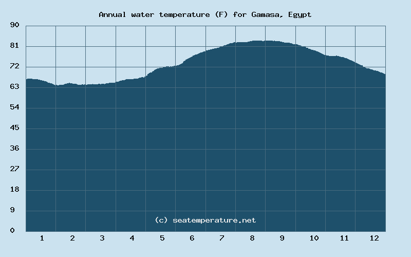 On this page, you will find comprehensive information about the sea temperature in Gamasa in Egypt, including current readings, historical data and trends, monthly averages, as well as weather forecasts and upcoming temperature predictions. We find every spot where you can swim and tell you what the water temperature is there today and throughout the year.