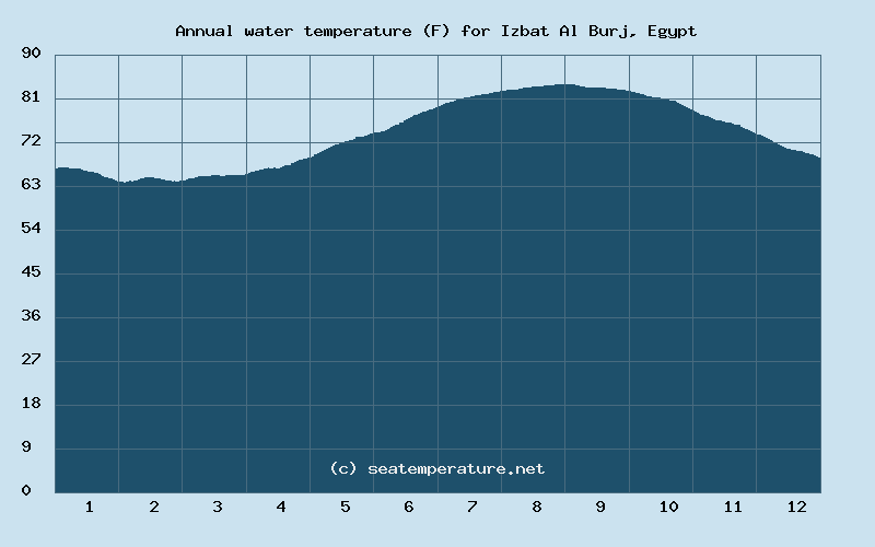 Sea Temperature in Izbat Al Burj Throughout the Year