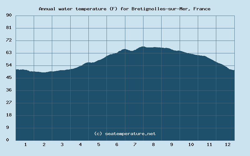 You can explore detailed data on how the water temperature in Bretignolles-sur-Mer varies each month:
