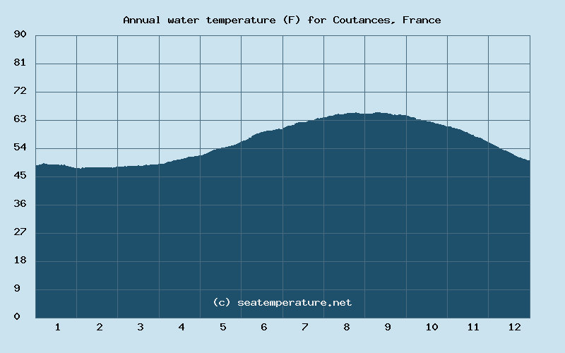 You can explore detailed data on how the water temperature in Coutances varies each month: