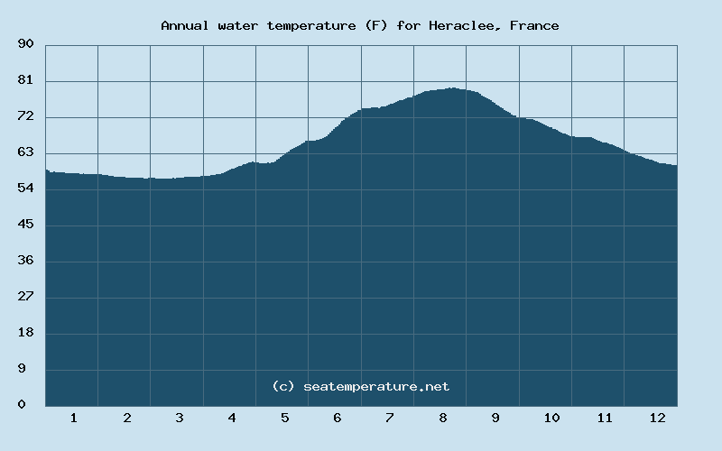 You can explore detailed data on how the water temperature in Heraclée varies each month: