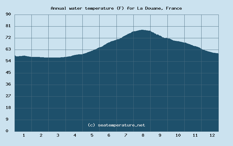 You can explore detailed data on how the water temperature in La Douane varies each month: