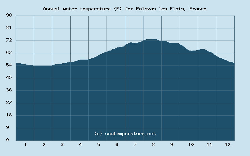 You can explore detailed data on how the water temperature in Palavas-les-Flots varies each month: