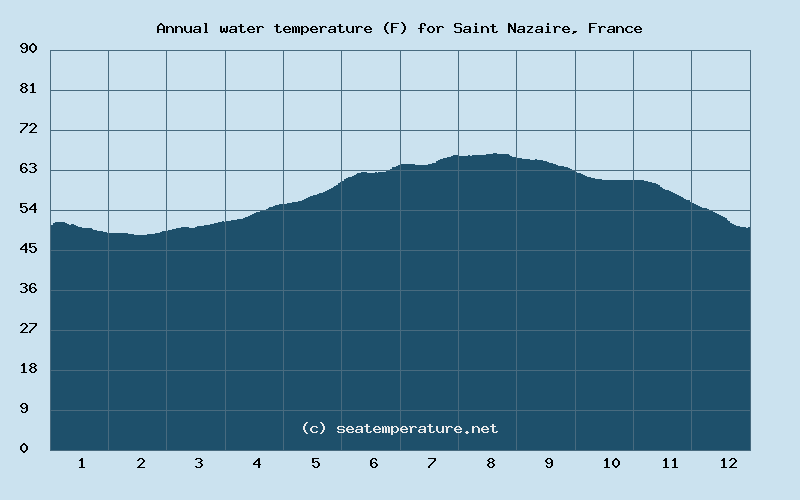 You can explore detailed data on how the water temperature in Saint-Nazaire varies each month: