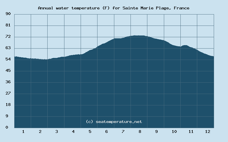 It cannot be guaranteed that the water temperature in Sainte-Marie Plage will be comfortable for swimming in any month of the year.