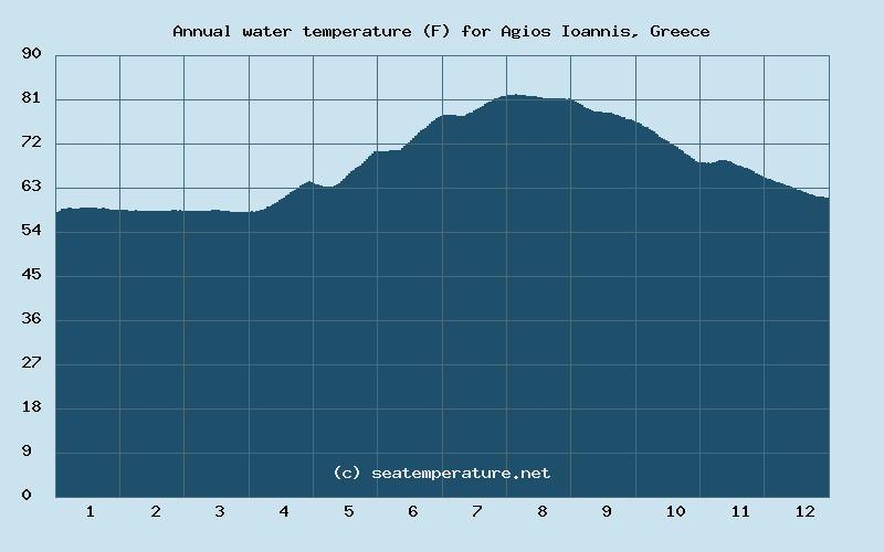 You can explore detailed data on how the water temperature in Agios Ioannis varies each month: