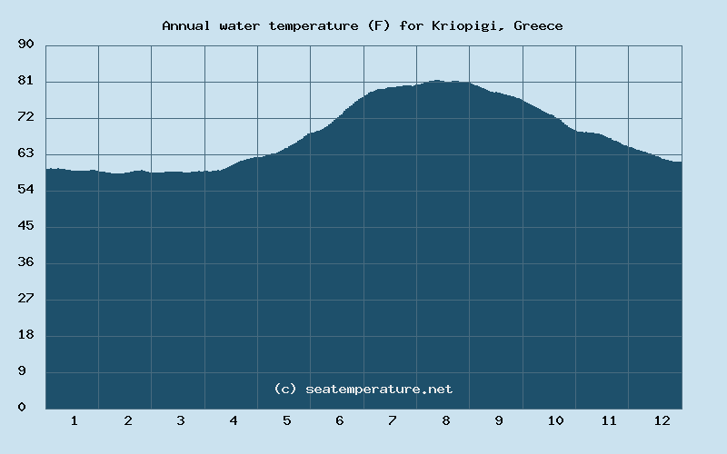 You can explore detailed data on how the water temperature in Kriopigi varies each month:
