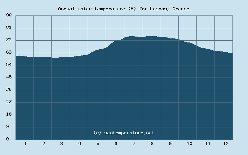 You can explore detailed data on how the water temperature in Lesbos varies each month: