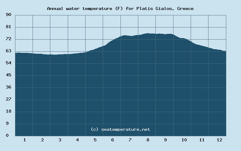 You can explore detailed data on how the water temperature in Platis Gialos varies each month: