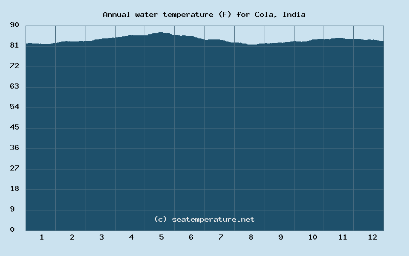 On this page, you will find comprehensive information about the sea temperature in Cola in India, including current readings, historical data and trends, monthly averages, as well as weather forecasts and upcoming temperature predictions. We find every spot where you can swim and tell you what the water temperature is there today and throughout the year.