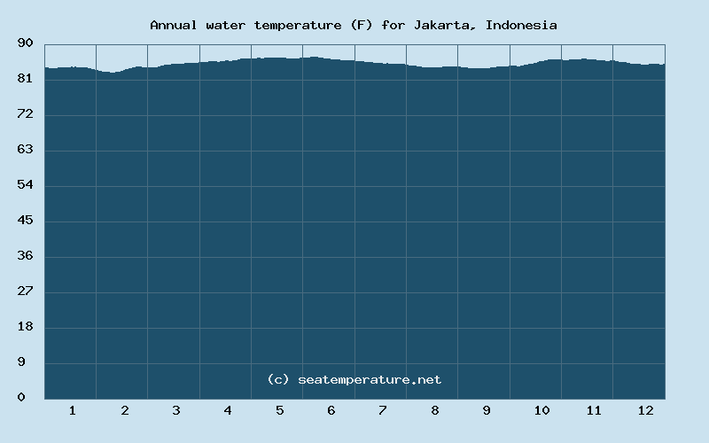 The water temperature in the Java Sea in Jakarta during the summer ranges from 27°C to 31°C (81°F to 88°F).