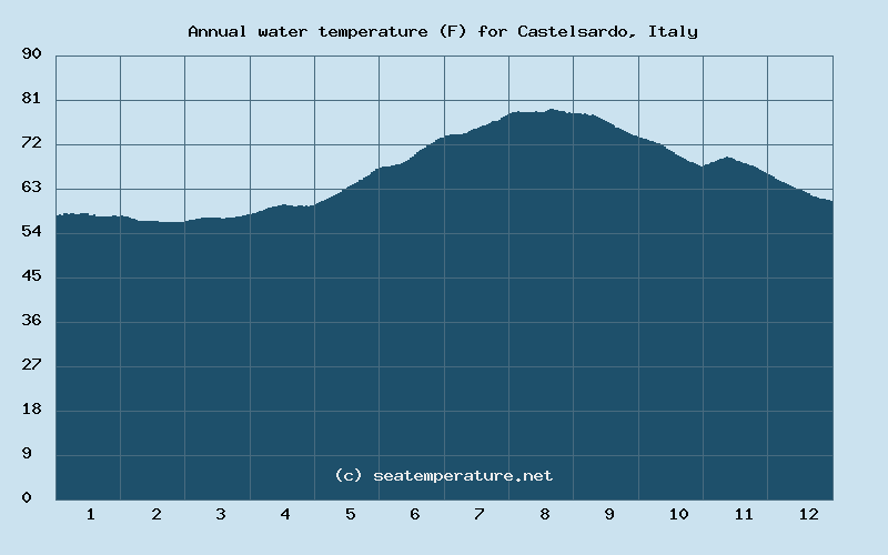 You can explore detailed data on how the water temperature in Castelsardo varies each month: