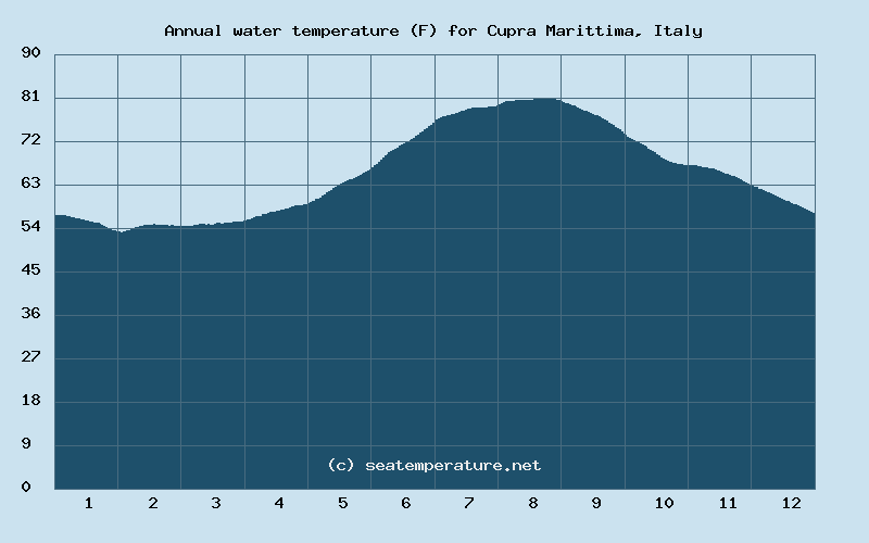 You can explore detailed data on how the water temperature in Cupra Marittima varies each month: