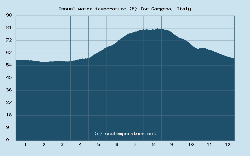 You can explore detailed data on how the water temperature in Gargano varies each month: