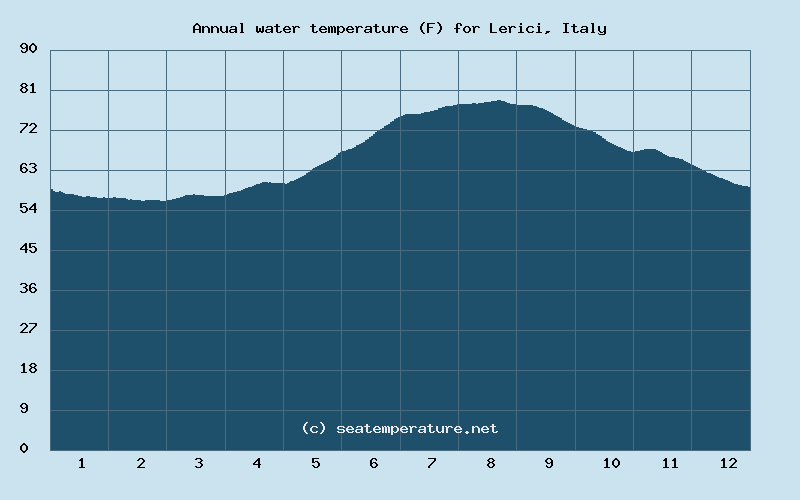 You can explore detailed data on how the water temperature in Lerici varies each month: