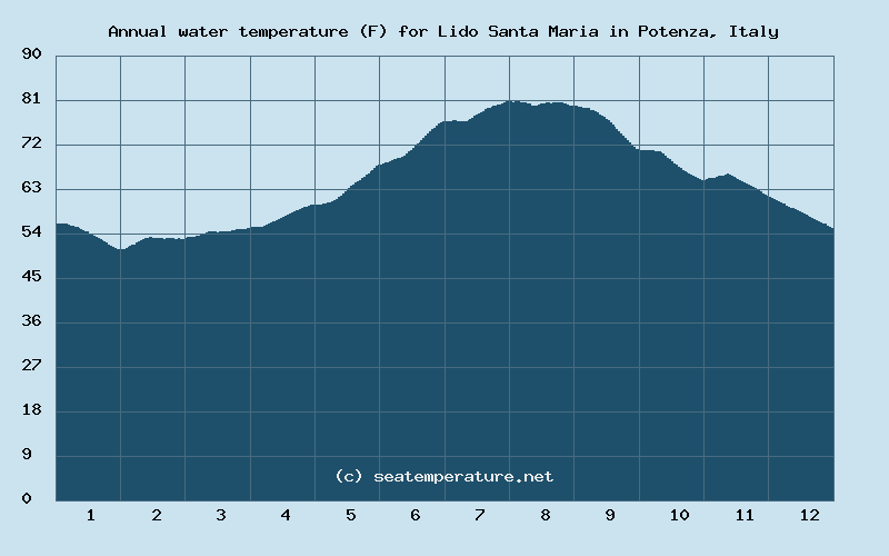You can explore detailed data on how the water temperature in Lido Santa Maria in Potenza varies each month:
