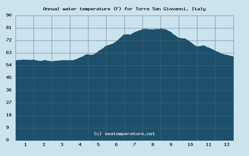 You can explore detailed data on how the water temperature in Torre San Giovanni varies each month: