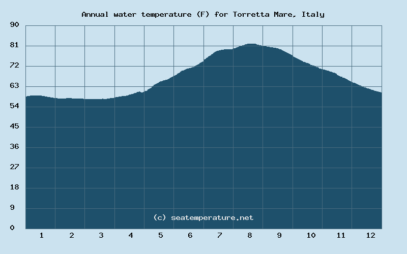 You can explore detailed data on how the water temperature in Torretta Mare varies each month: