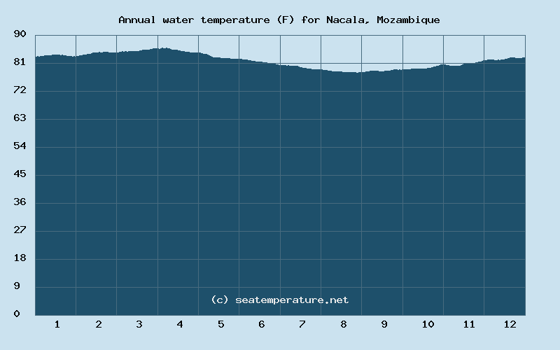 According to our forecast, the sea temperature in Nacala will remain nearly unchanged in the coming days, its value will be 80°F.