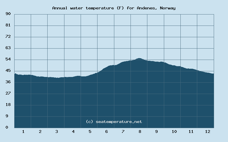 You can explore detailed data on how the water temperature in Andenes varies each month: