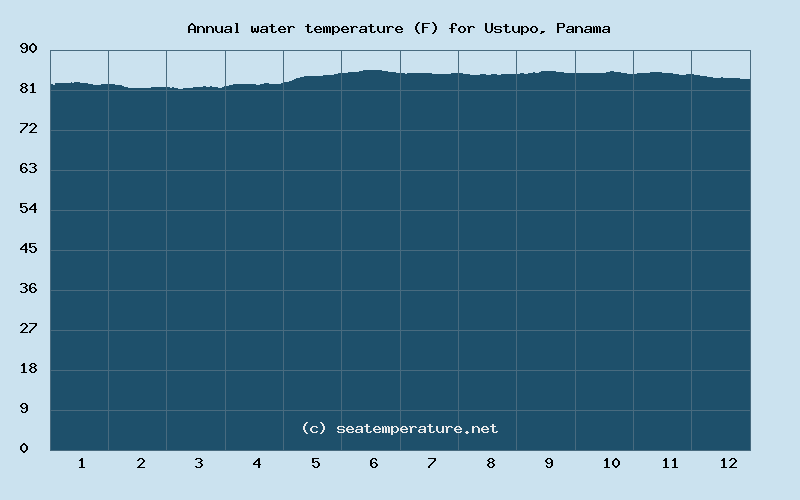 You can explore detailed data on how the water temperature in Ustupo varies each month: