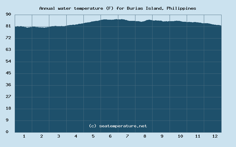 You can explore detailed data on how the water temperature in Burias Island varies each month: