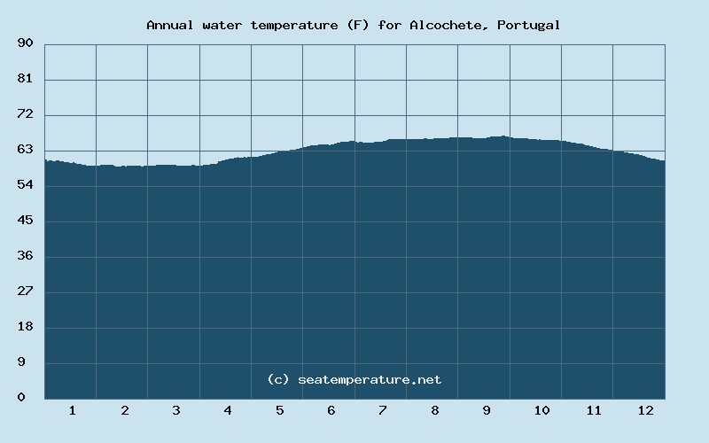 You can explore detailed data on how the water temperature in Alcochete varies each month: