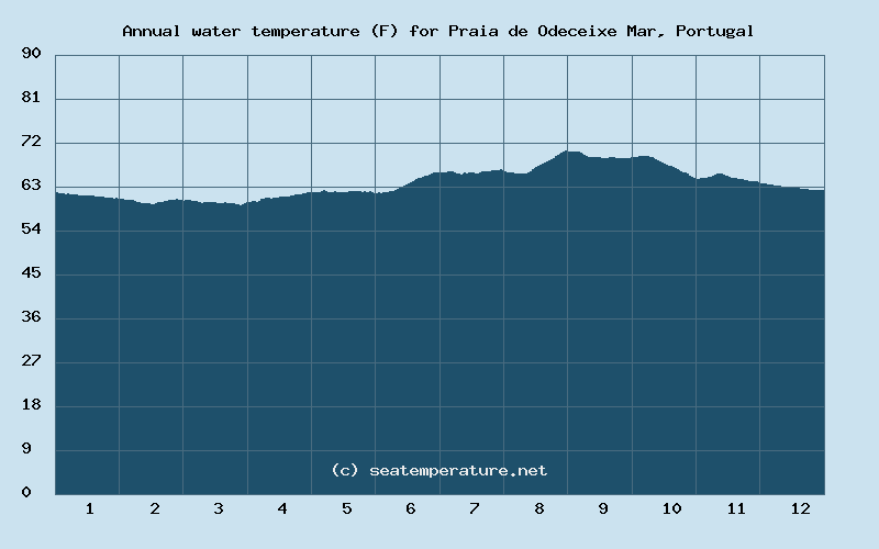 You can explore detailed data on how the water temperature in Praia de Odeceixe Mar varies each month: