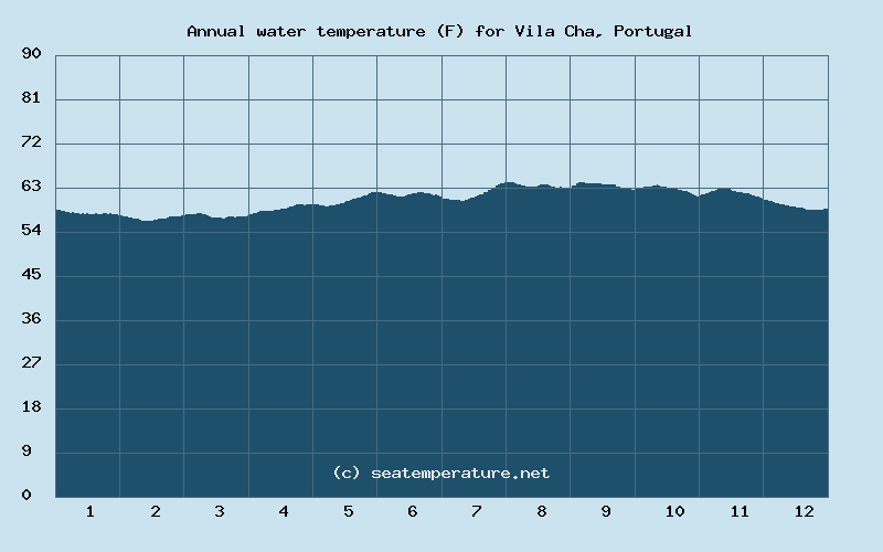 The water temperature in the Atlantic Ocean in Vila Cha during the winter ranges from 12°C to 17°C (54°F to 63°F).