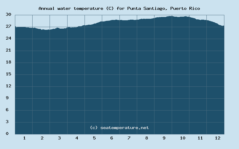 Below is the annual chart of sea temperature changes in the Caribbean Sea in Punta Santiago.