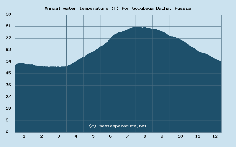 You can explore detailed data on how the water temperature in Golubaya Dacha varies each month: