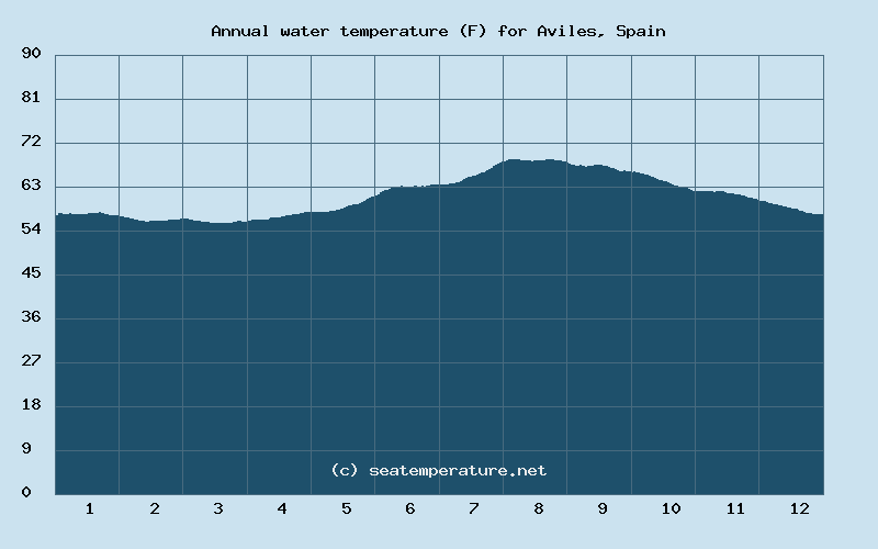 You can explore detailed data on how the water temperature in Aviles varies each month: