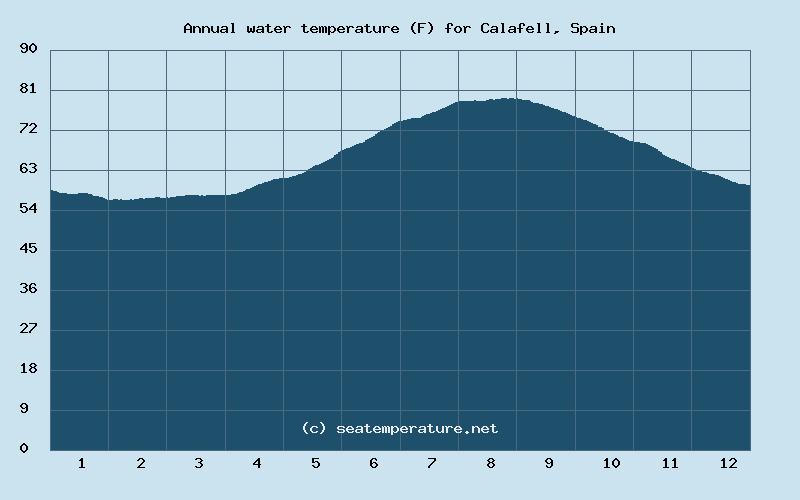You can explore detailed data on how the water temperature in Calafell varies each month: