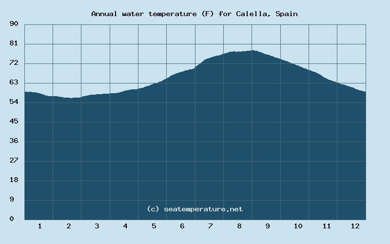 You can explore detailed data on how the water temperature in Calella varies each month:
