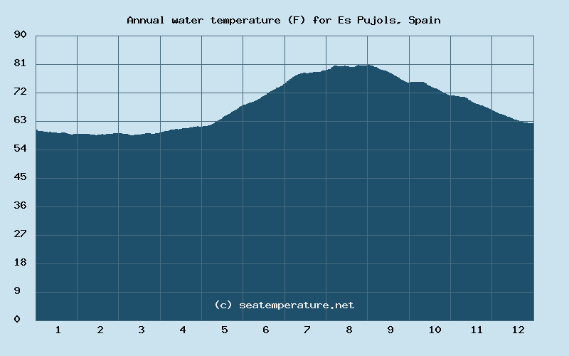 You can explore detailed data on how the water temperature in Es Pujols varies each month: