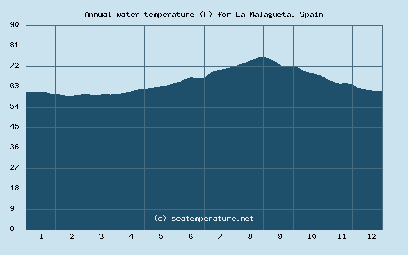 You can explore detailed data on how the water temperature in La Malagueta varies each month: