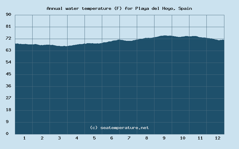 You can explore detailed data on how the water temperature in Playa del Hoyo varies each month: