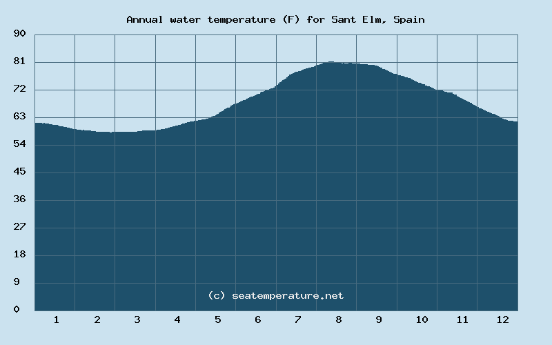 You can explore detailed data on how the water temperature in Sant Elm varies each month:
