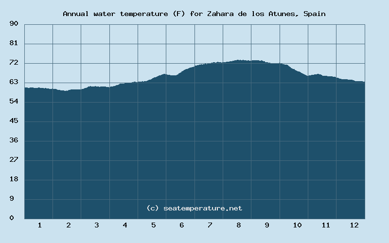 You can explore detailed data on how the water temperature in Zahara de los Atunes varies each month: