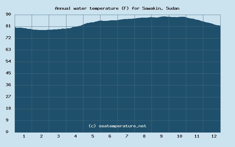 You can explore detailed data on how the water temperature in Sawakin varies each month: